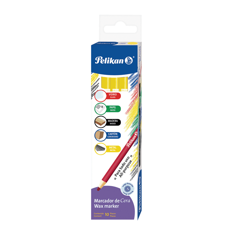 Gracias a la calidad de la cera, pinta sobre vidrio, papel, cartón, caucho, cuero y muchas otras superficies.
