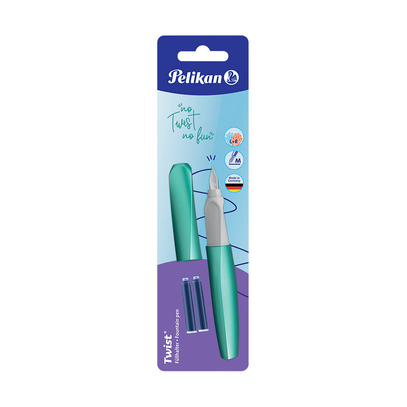 Moderna pluma fuente con cuerpo en forma de espiral. Disponible en 4 grandiosas combinaciones de color.